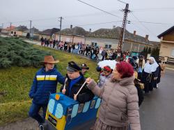 Délelőtt felvonultunk nagy hanggal a falun, az ovisokat is meglátogattuk. Visszaérkezvén az iskolába felvonultak az egyéni és a csoportos beöltözők a zsűri előtt. Nehéz dolguk volt, de a sok szép jelmezből jó néhányan kaptak ajándékot.